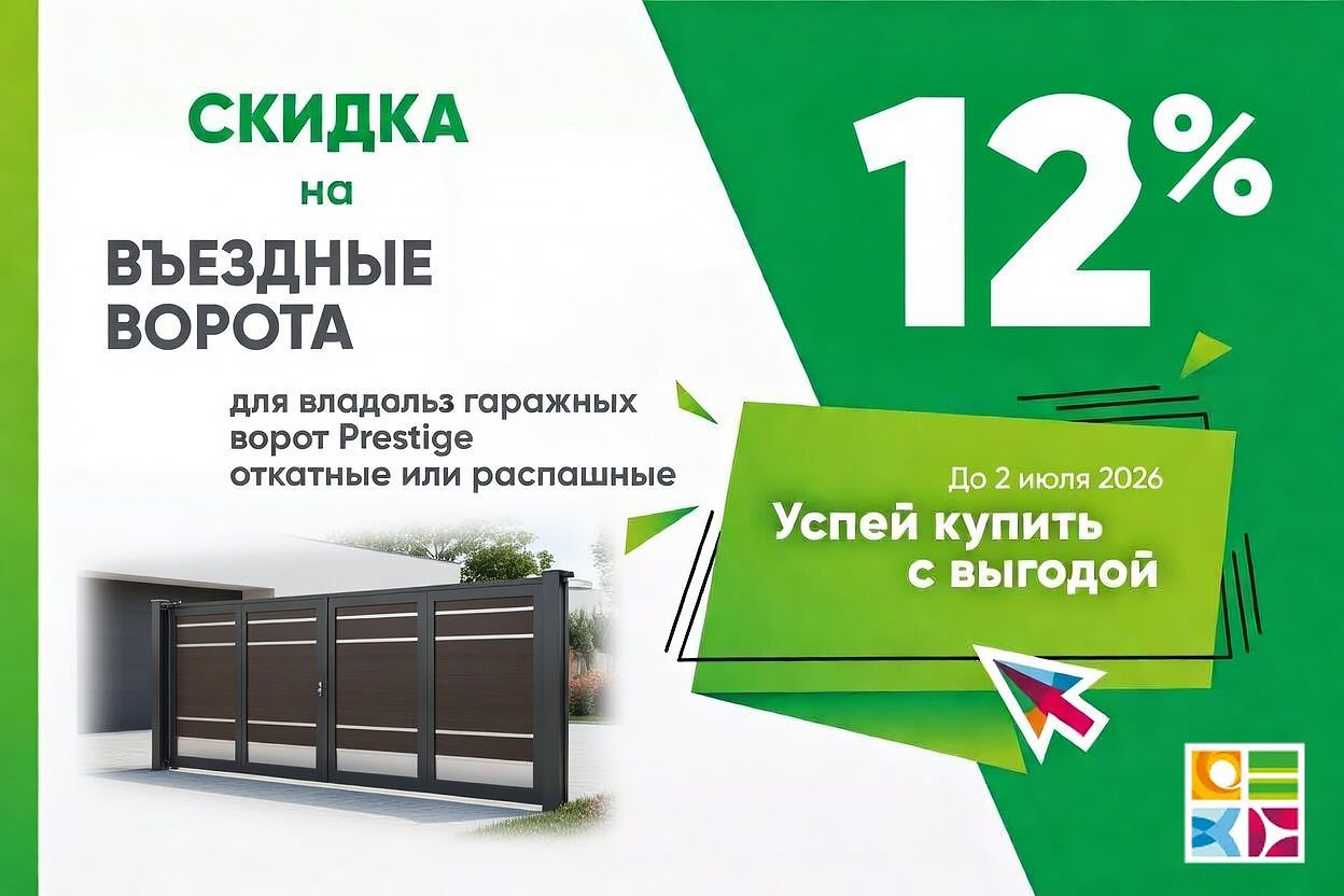 Скидка 12% на въездные ворота для владельцев гаражных ворот